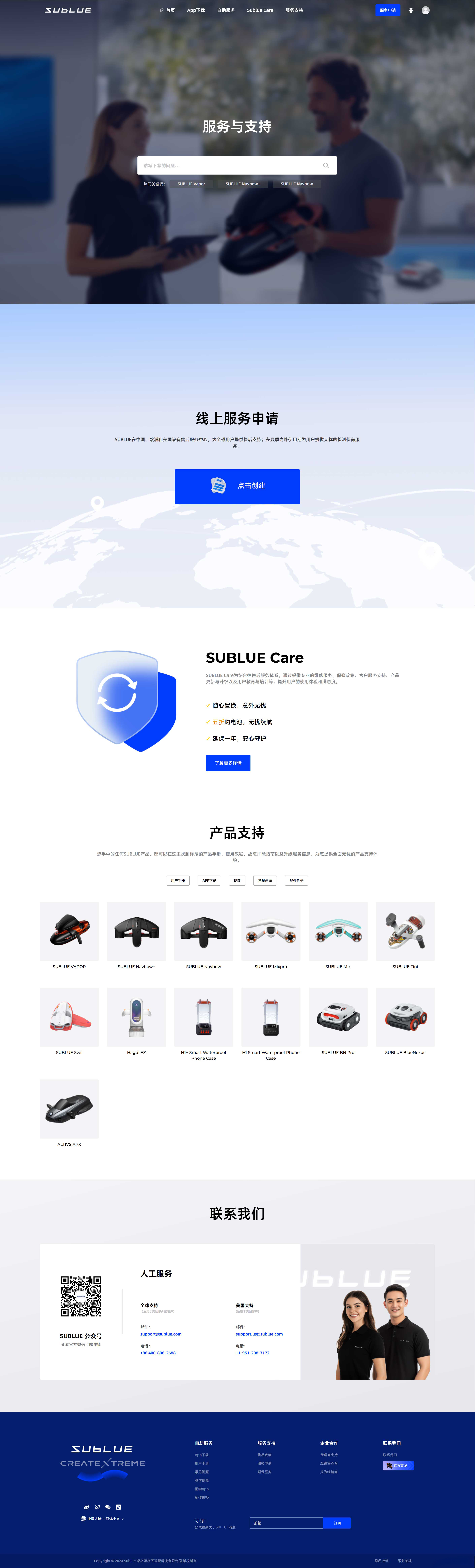 SUBLUE Care不仅涵盖专业的维修服务与透明的保修政策,更延伸至全方位的客户关怀。可在此轻松获取详尽的产品手册、直观的使用教程与实用的故障排除指南。此外,还提供产品更新升级通道、用户培训资源,并特别推出包括机器置换、延保计划以及电池半价购等专属权益,全方位守护您的SUBLUE产品。