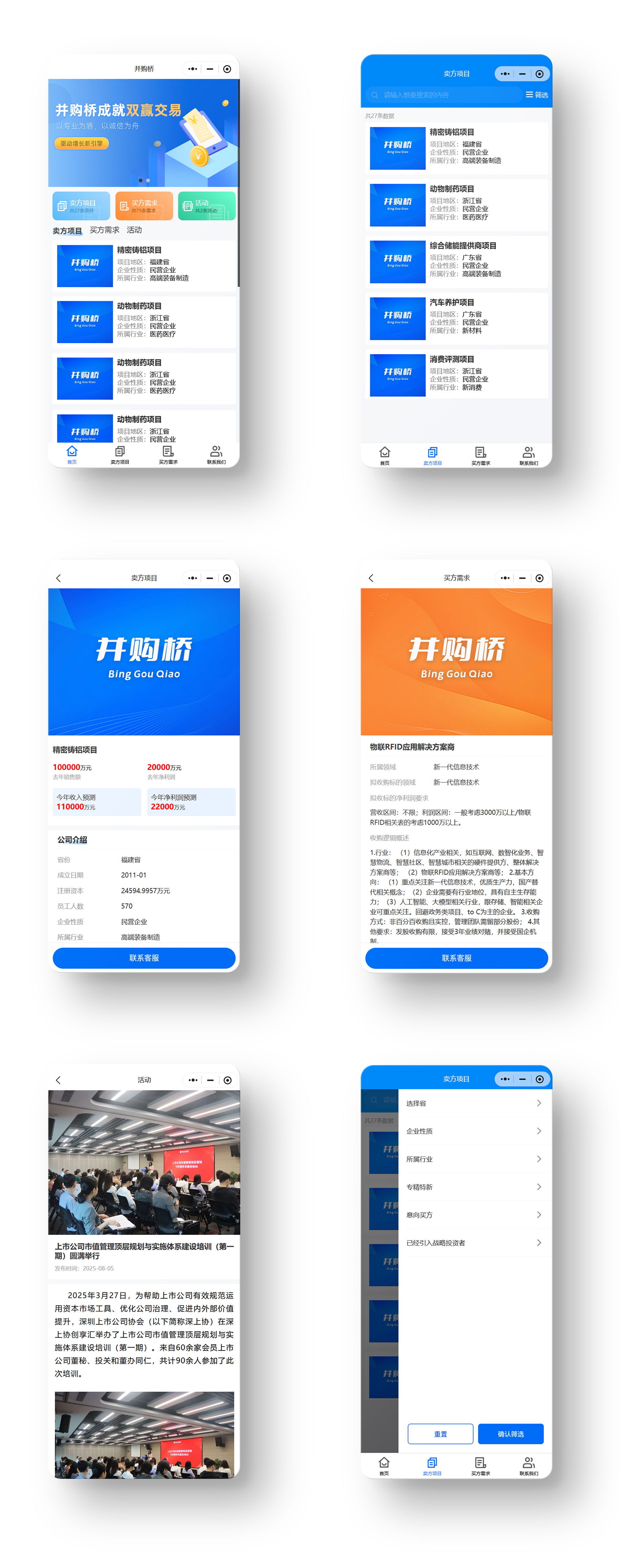 并购桥聚焦于卖方项目、买方需求、行业活动三大核心板块,精准对接供需两端。卖方可通过标准化流程发布项目信息,触及广泛而优质的潜在买家;买方则可清晰定义并发布投资需求,系统将智能匹配推荐优质标的。平台同步整合线下峰会、线上路演等专业活动,为用户提供交流洞察、拓展网络的一站式服务。