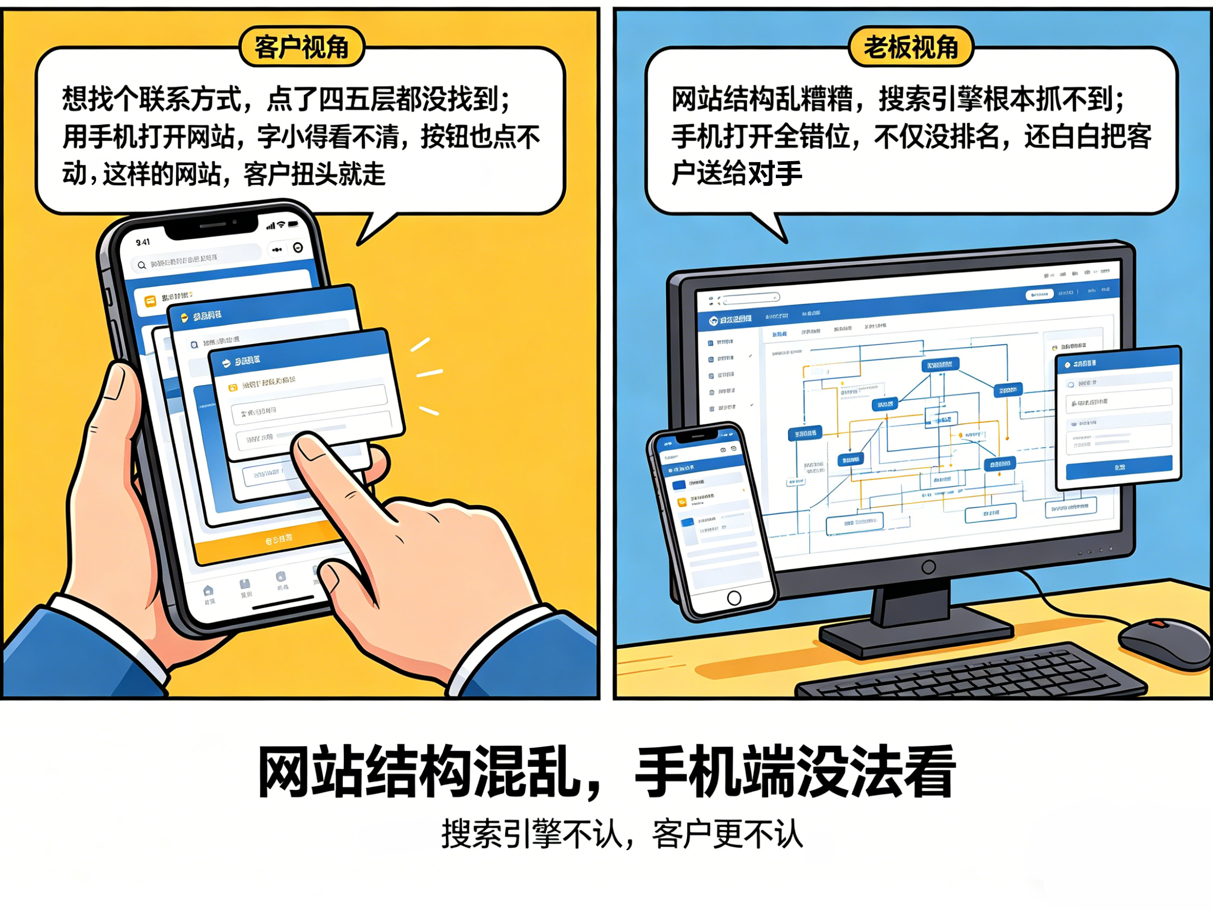 其次是忽视移动端适配。百度早已明确表示移动端友好度是排名因素之一,天津本地企业负责人用手机搜索"天津网站建设公司""武清区机械加工"等关键词的比例持续上升。如果网站在手机上显示错位、字体过小、按钮无法点击,不仅影响SEO排名,还会直接流失潜在客户。